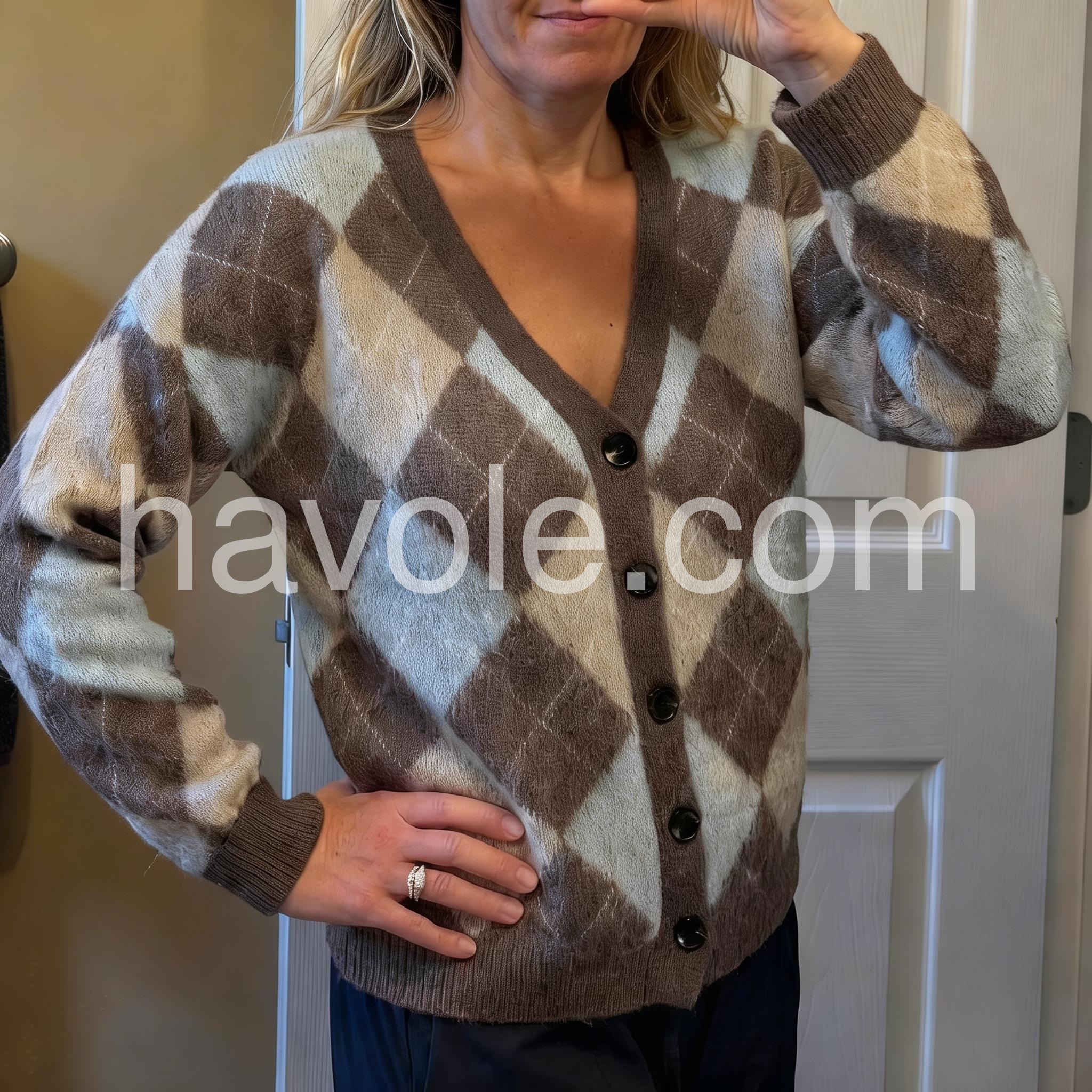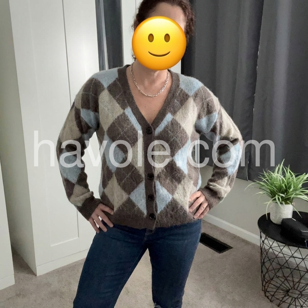 Yes!If you want a refund please contact our customer service at this email([email protected]).This cardigan features a timeless argyle geometric print in versatile neutral tones, offering a sophisticated layering option. Crafted with a button-front design, it allows easy wear and adjustable styling. Its refined pattern blends classic and contemporary elements, making it an ideal choice for enhancing both casual and polished outfits with subtle texture and depth.