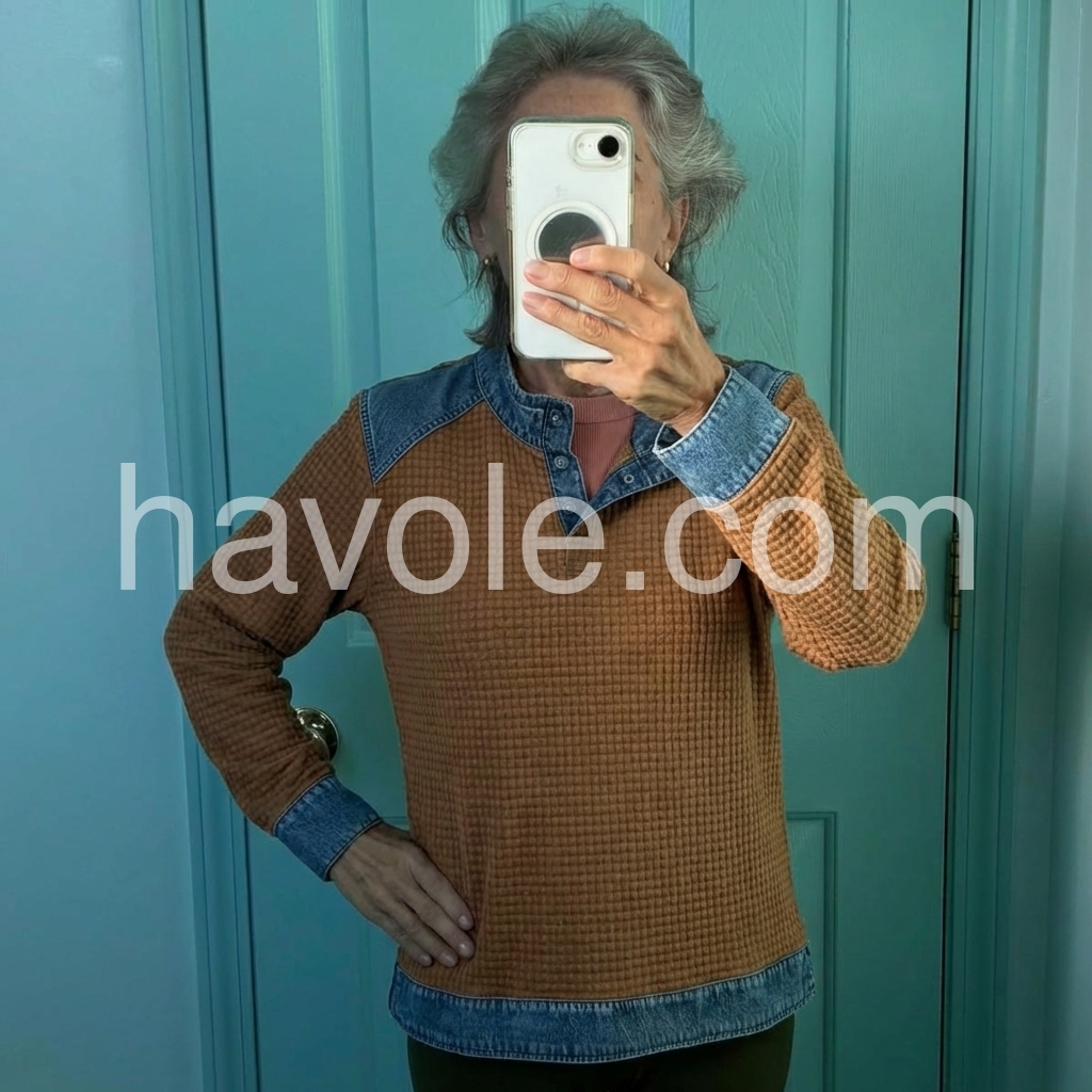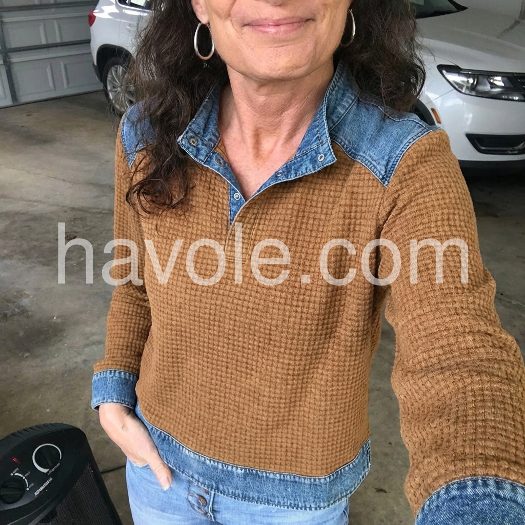 Yes!If you want a refund please contact our customer service at this email([email protected]).Crafted from premium denim, this long sleeve top features a sophisticated brown color block design that adds visual interest and versatility to your wardrobe. The structured fabric provides durability and maintains its shape through regular wear, while the extended sleeves offer practical coverage. The color blocking technique creates a modern silhouette that works seamlessly with both casual and elevated styling. Perfect for layering or wearing as a standalone piece, this top delivers timeless appeal with contemporary flair.