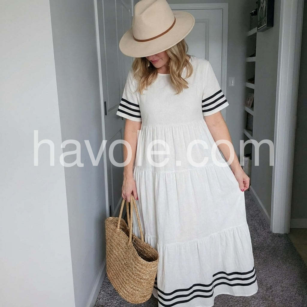 Yes!If you want a refund please contact our customer service at this email([email protected]).This Groovy Round Neck Short Sleeve Maxi Dress combines classic design with modern comfort. Featuring a flattering round neckline and short sleeves, it offers ease of movement and breathability. The maxi length provides versatile styling options, suitable for both casual and semi-formal occasions. Crafted to balance style and practicality, this dress is an essential addition to a refined wardrobe.