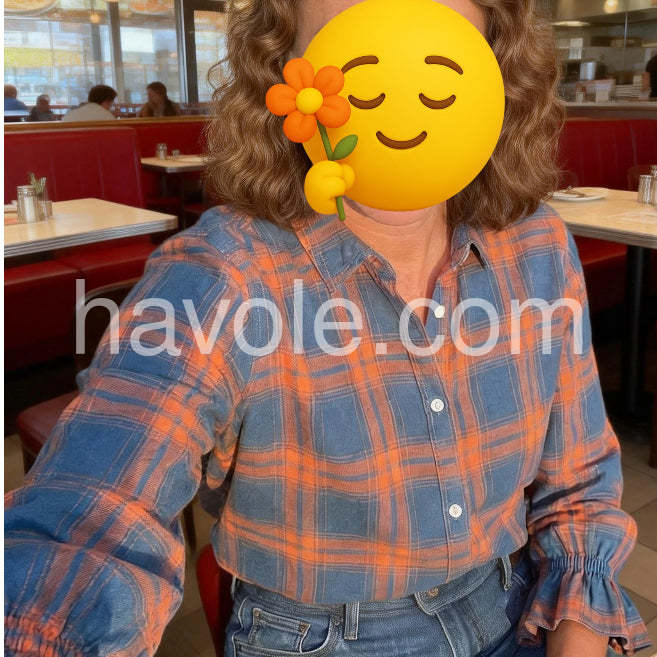 Yes!If you want a refund please contact our customer service at this email([email protected]).This blue check button-down shirt features elegant ruffle cuff sleeves, blending classic style with a modern twist. Crafted for a refined look, it offers a tailored fit that enhances your silhouette while providing comfort throughout the day. Ideal for professional settings or casual wear, this shirt adds a subtle yet distinctive detail that elevates any outfit.