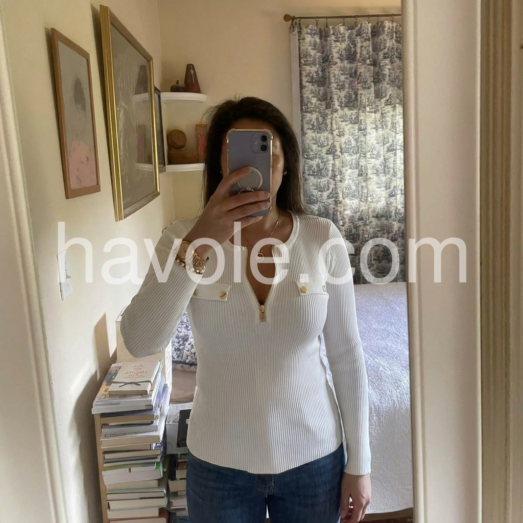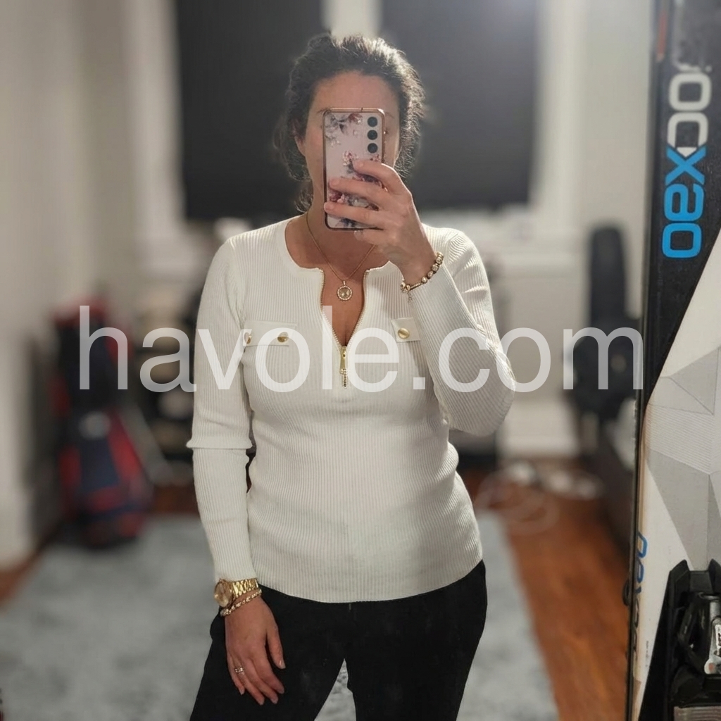 Yes!If you want a refund please contact our customer service at this email([email protected]).Elevate your wardrobe with our Chic Zip V-Neck White Plain Knit Top. The stylish v-neck neckline and subtle zip feature add a touch of sophistication to any outfit. Made from high-quality, soft knit material, this top is both comfortable and versatile. Perfect for any occasion, elevate your style with this must-have piece.