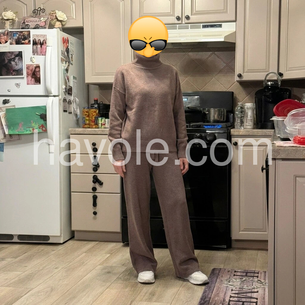 Ultra-chic yet effortless, this knit set takes loungewear to a new level. As comfortable as pajamas, the monocolor two-piece looks like it was pulled straight from the runway. The laid-back glam style features a sweater with a ribbed turtleneck and dropped shoulders and drawstring pants with a gently flared leg.