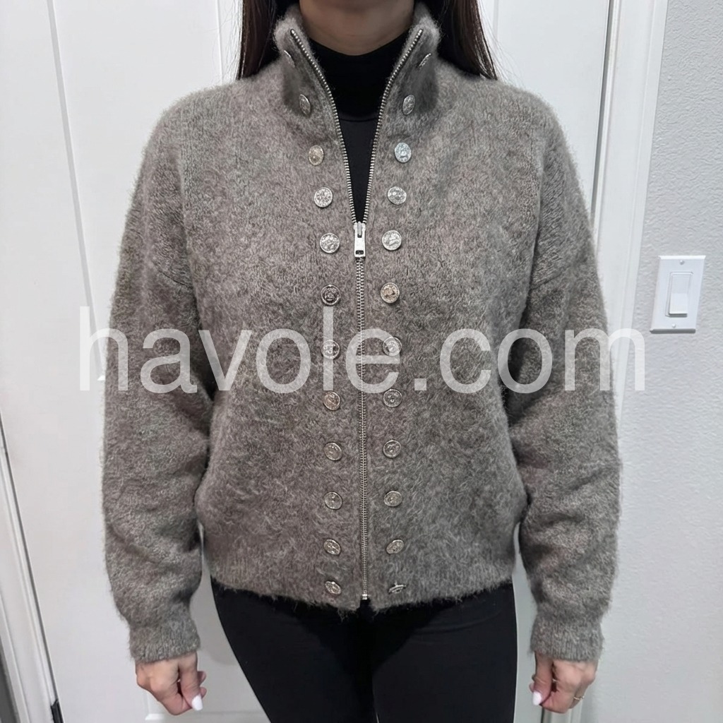 Yes!If you want a refund please contact our customer service at this email([email protected]).The Fuzzy Grey High Neck Long Sleeve Cardigan is a cozy and stylish addition to any wardrobe. Made with a high neck and long sleeves, it provides warmth and comfort during colder months. The fuzzy texture adds a touch of softness and style, making it a versatile piece for any outfit.