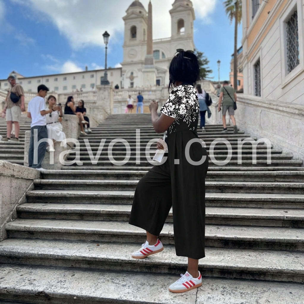 Black Floral Print Half Sleeve Jumpsuit